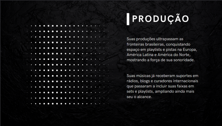 Ses productions dépassent les frontières brésiliennes et s'imposent sur les pistes de danse et les playlists d'Europe, d'Amérique latine et d'Amérique du Nord, témoignant de la puissance de son style.